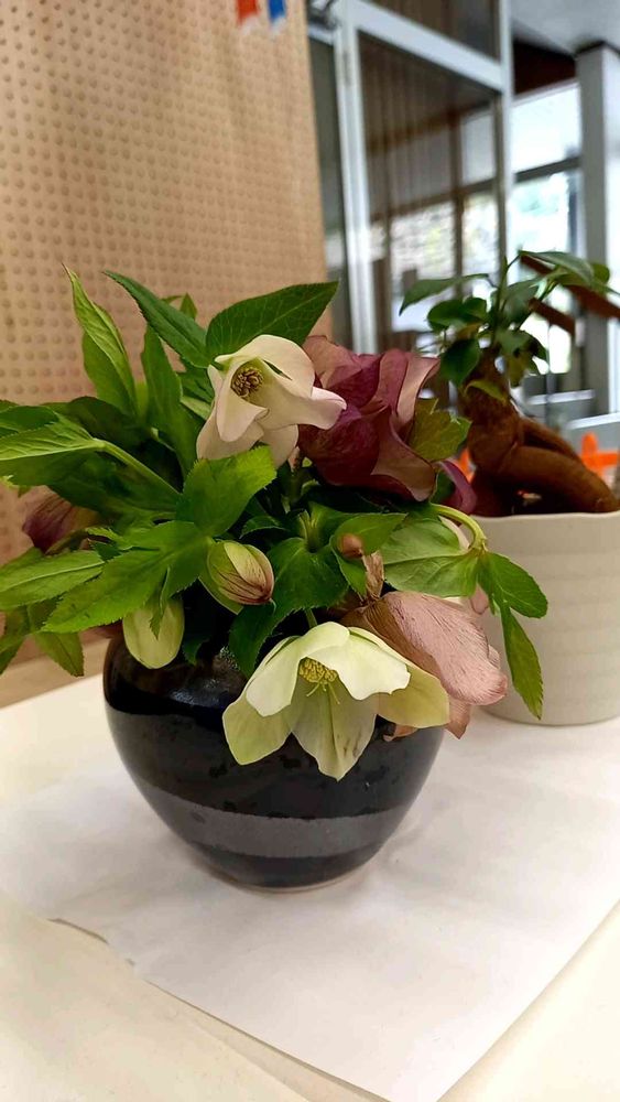 庭で見つけた最後のクリスマスローズを会社へ🌺