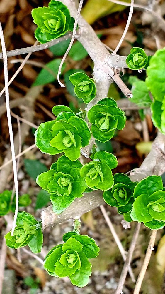 紫式部の新芽 すっかり枯れてしまったと凹んでいましたが薔薇の花のような姿に嬉しくなります✨