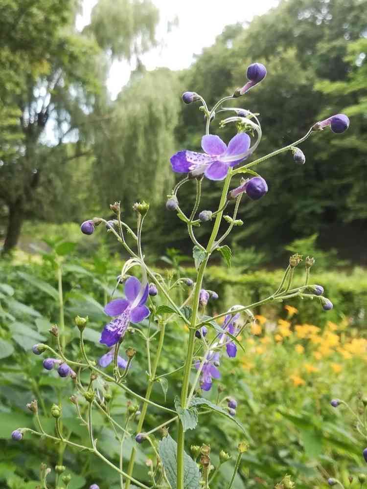 雁金草(カリガネソウ)を発見。花の形が鳥の雁が飛ぶ姿に似ていることからついた名前らしい..清楚な紫色が目を引く..
