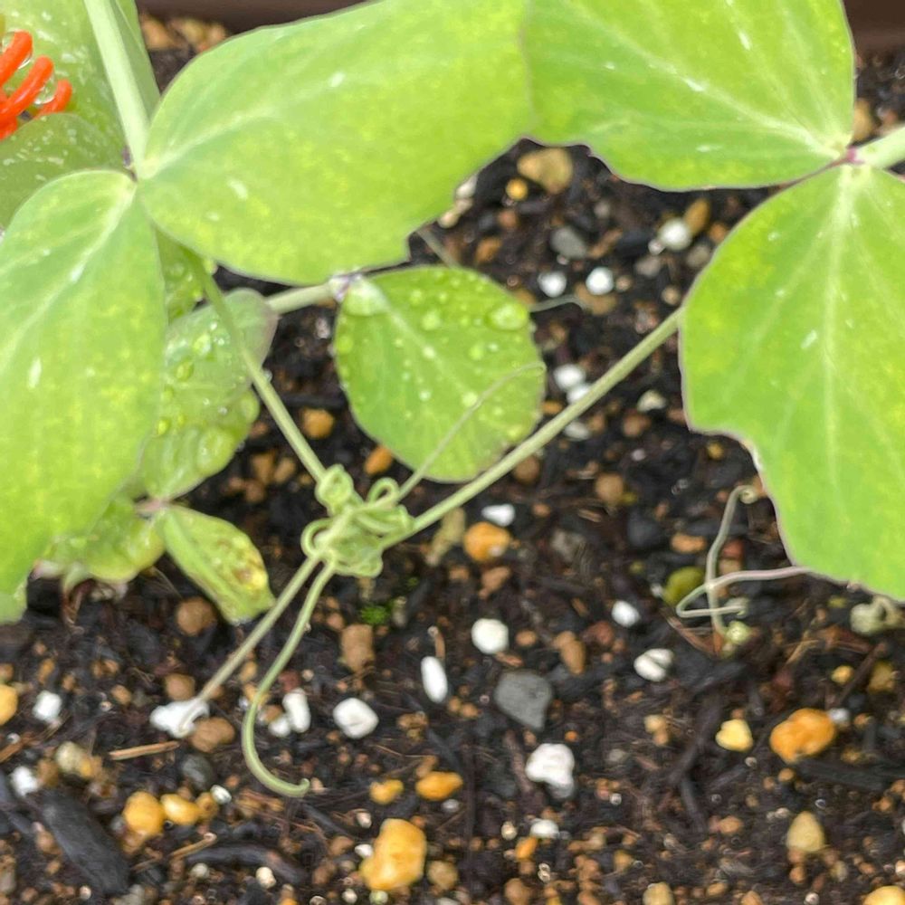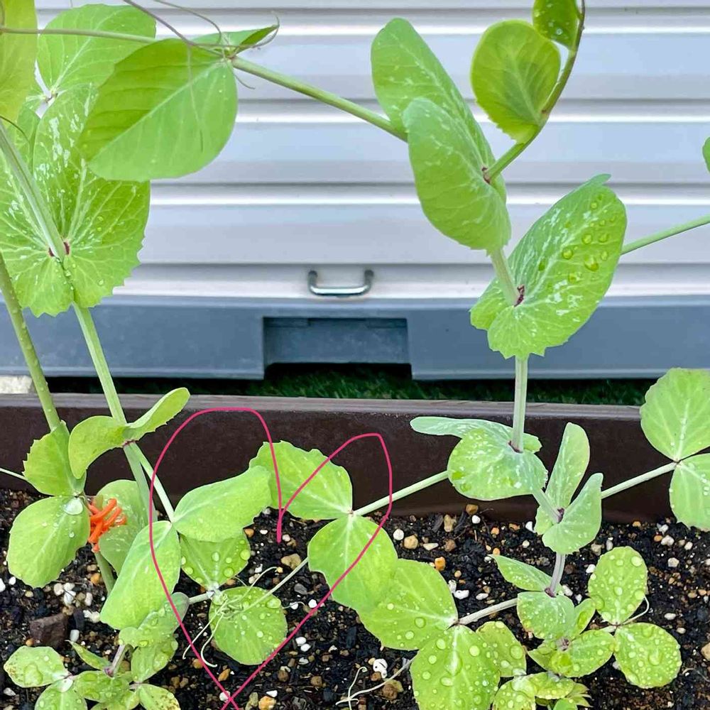 左には、家にあった支柱をしていたのですが、右にはしていなかったので、買いに行き立てようとしていたところ、なんと二つで手を取るようにして絡まり支えあっているではないですか☺️