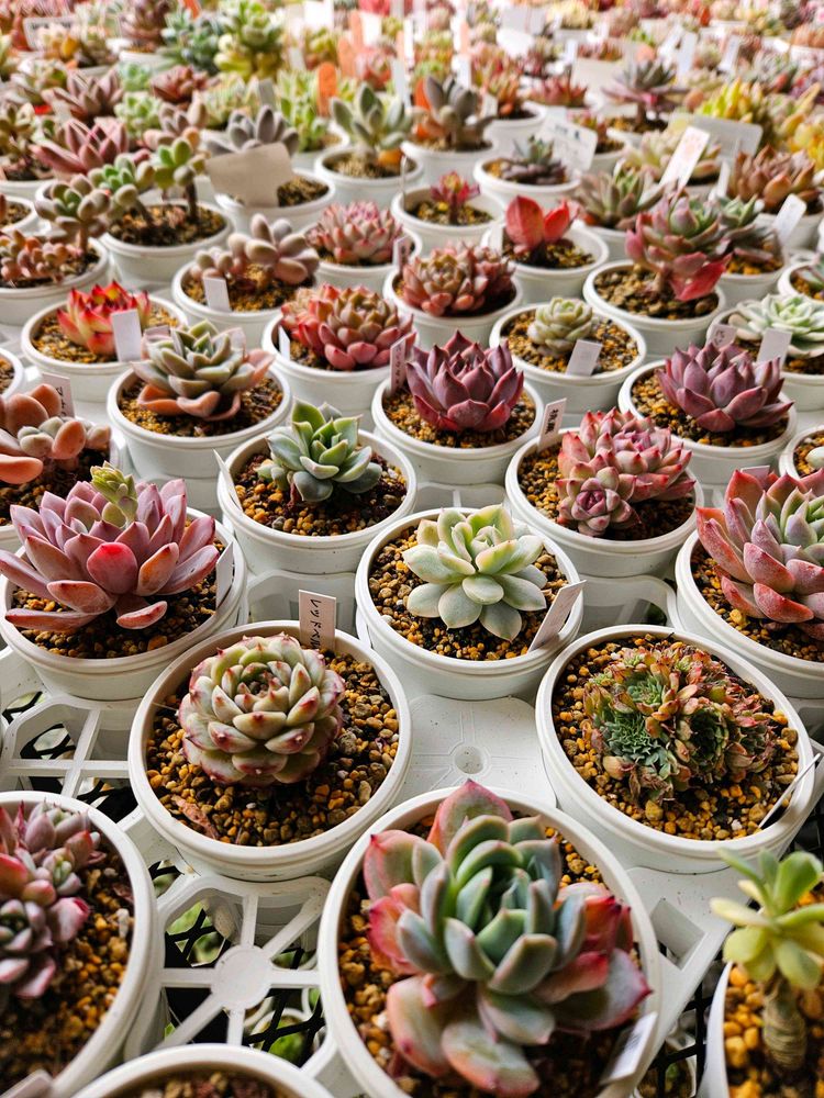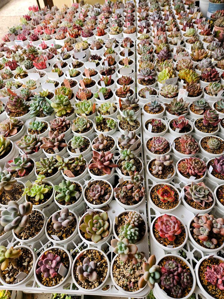 鉢はプラ鉢A-25が一番多いかもなるべく小さく育てたいけど群生や成長の早い子はA-30から40の鉢も使ってますよ😃