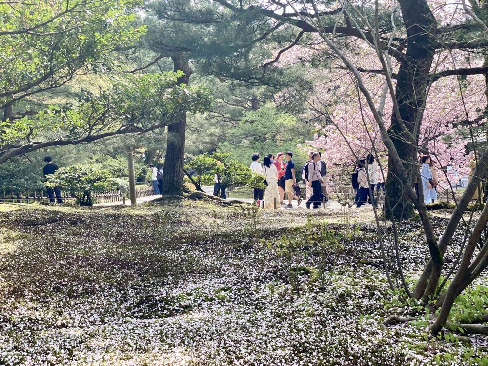 穏やかな天気☀️に、桜🌸も満開から花吹雪へ🎶 苔💚とのコラボが今まで見た桜の中で最高の景色でした💞