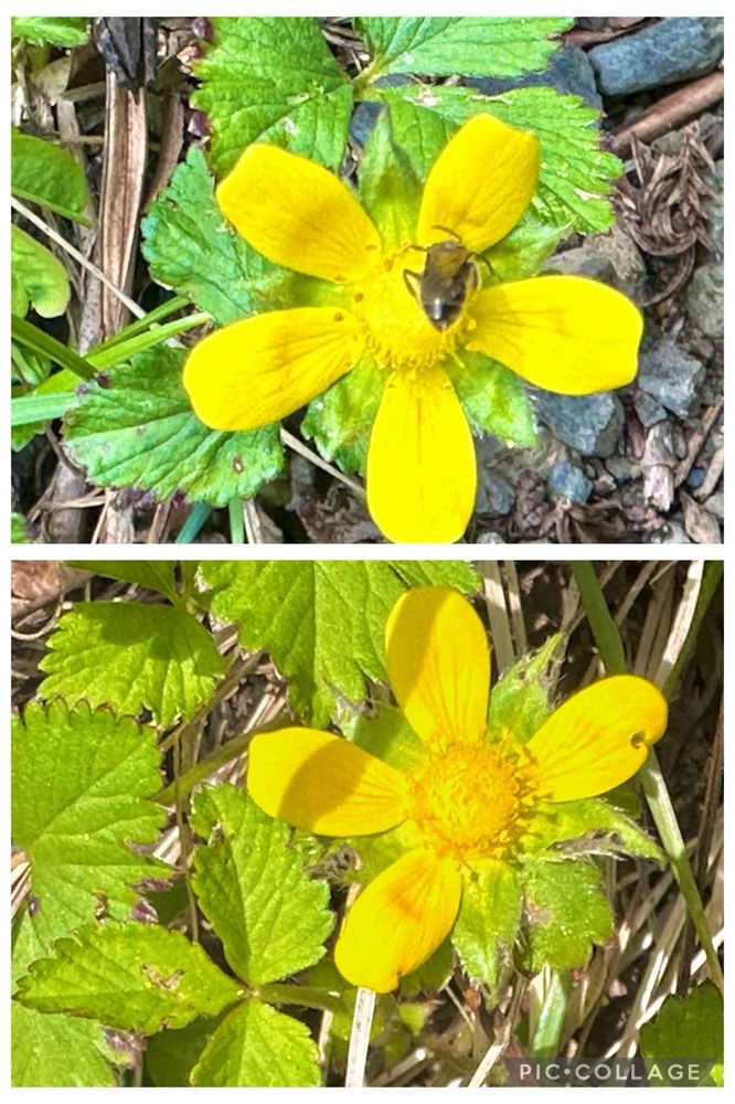 花の大きさ、葉の形(普通のヘビイチゴの葉は先端が尖らず、全体的に丸い)からヤブヘビイチゴと決め打って真上から写真を撮ったんだけど、後から見てみると肝心の副萼片がハッキリとは映っていない😓