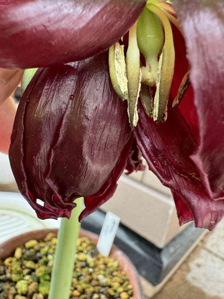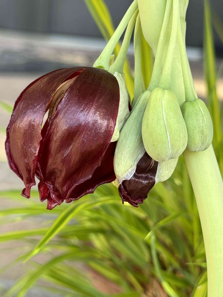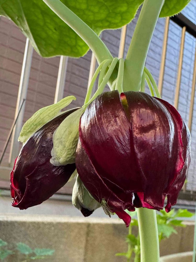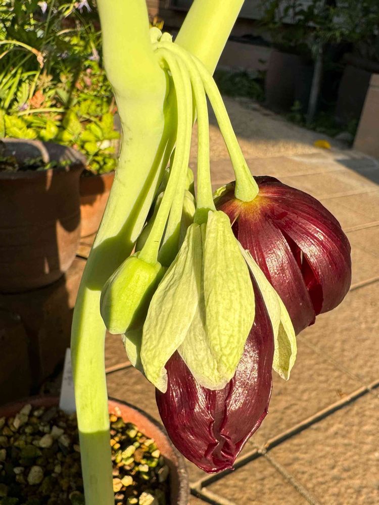 大柄の赤茶色の花が垂れ下がっている変わった花ですが、インパクトがあります💓🤭