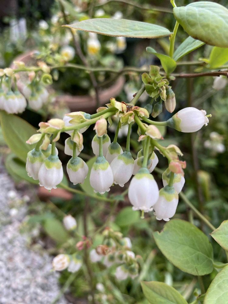 ブルーベリー ホームベルの花が咲いてます。ミツバチ🐝いなーい💦早くきてー