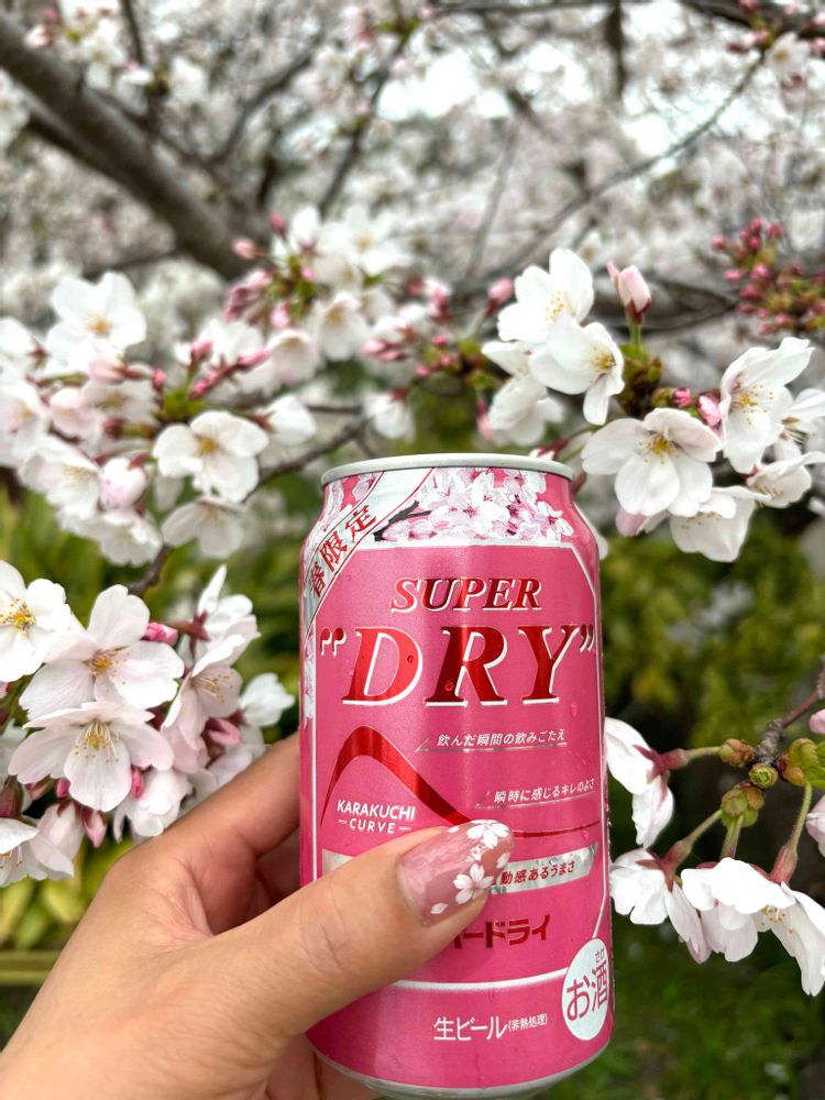 ネイルとビールの缶と桜の花とがなんだかピッタリだったので1本買ってパチリ📷✨(もちろん美味しく頂きました😆)