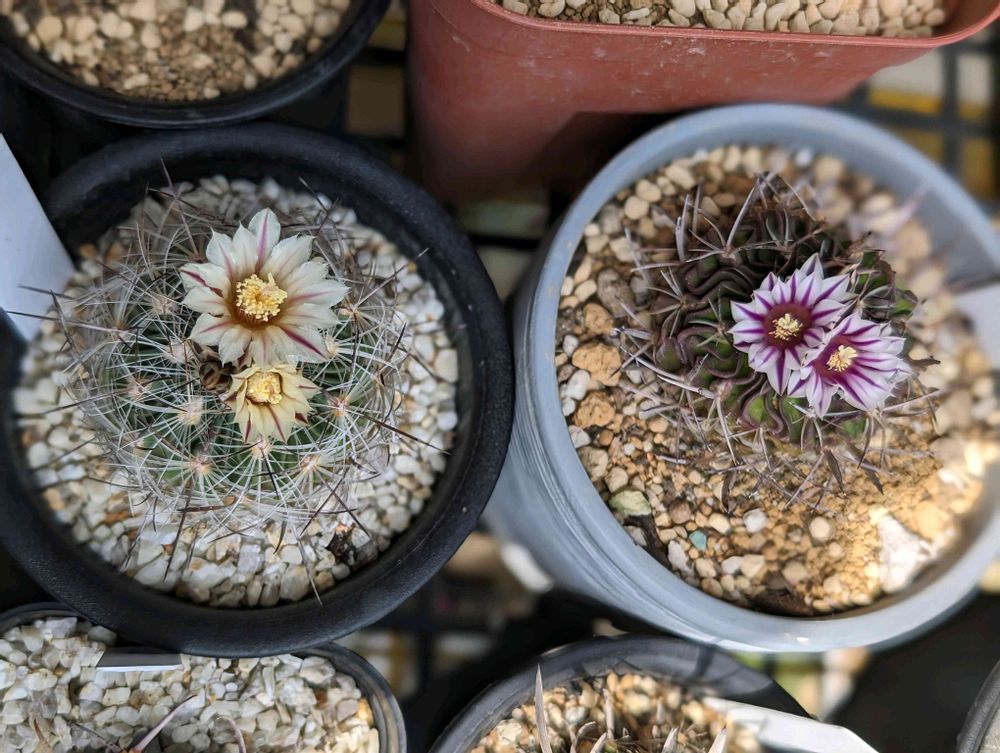 エキノフォスロカクタス 秋陣営と、縮玉が同時に咲きました😉👍