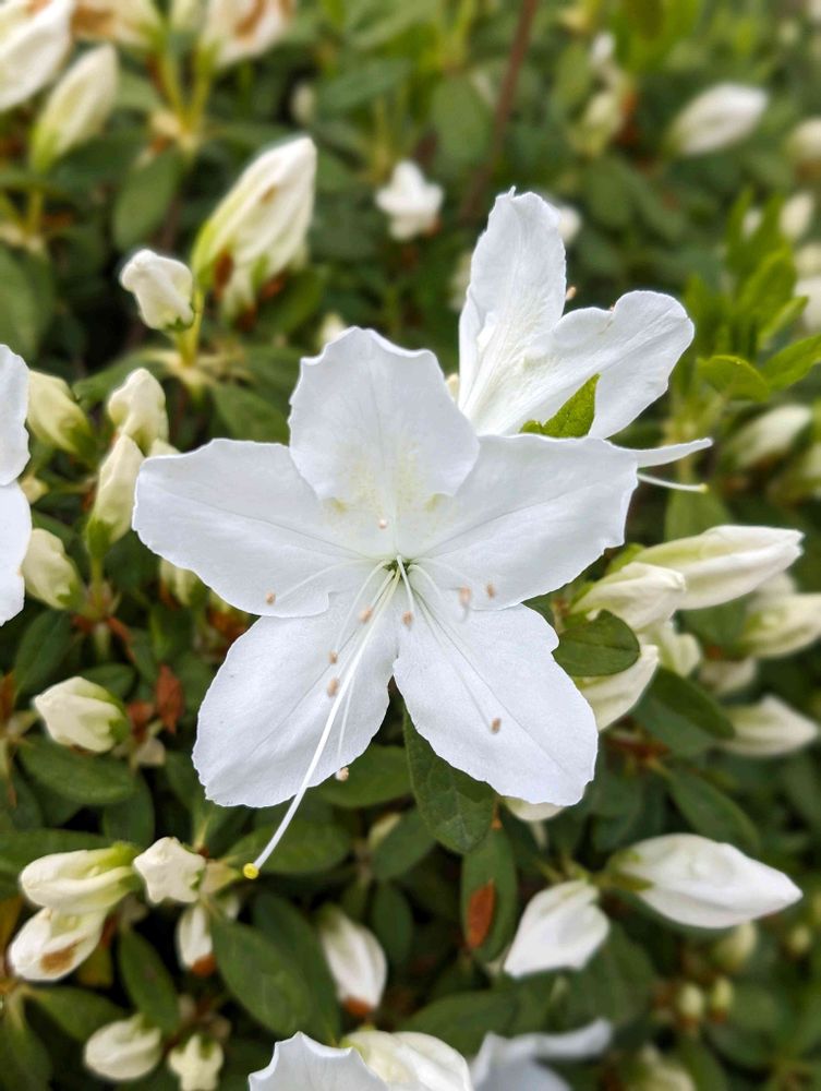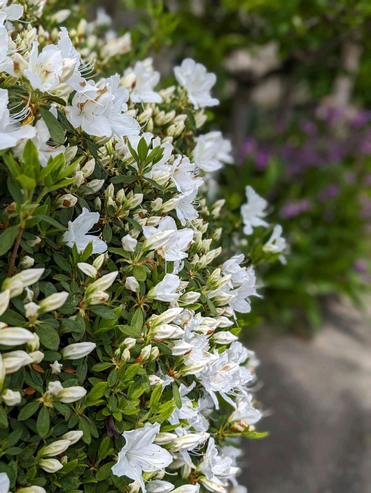 ツツジ、白花シラン…咲き始めですが、昨日までの雨で、ちょっと傷んでしまってます。