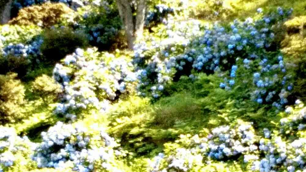 斜面の紫陽花の青も陽を浴びて眩しい
