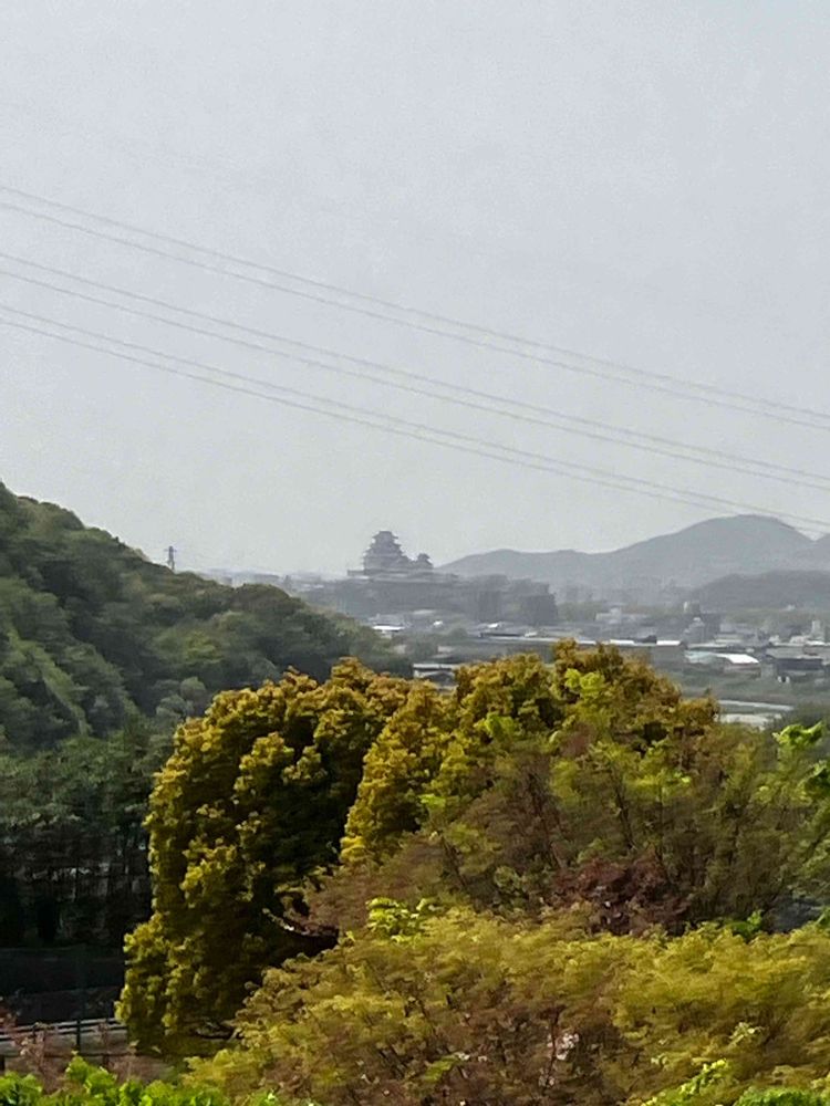 2024年4月17日(水)13時、春霞(黄砂?)の姫路城by城見台