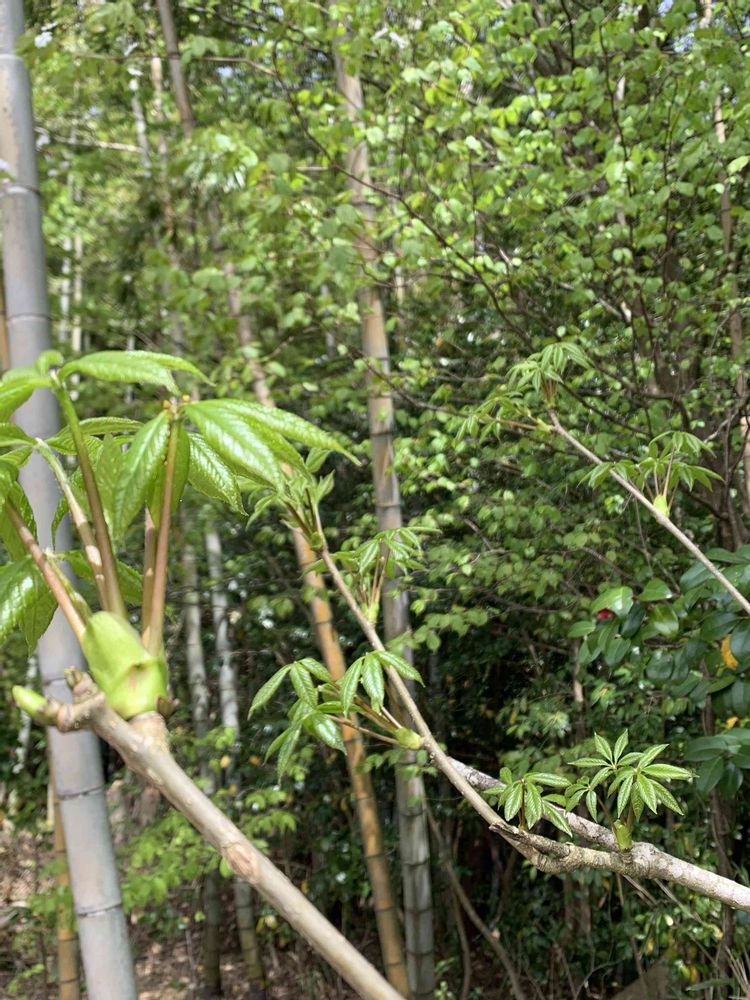 三方を山に囲われてるわが家😅今朝の裏山の反対にも山桜がキレイに咲いてます😀ん❓その横に灯台下暗し🤣コシアブラ見っけ❗️😅あ、タケノコはもう要らない🤣蹴飛ばしておきました😁