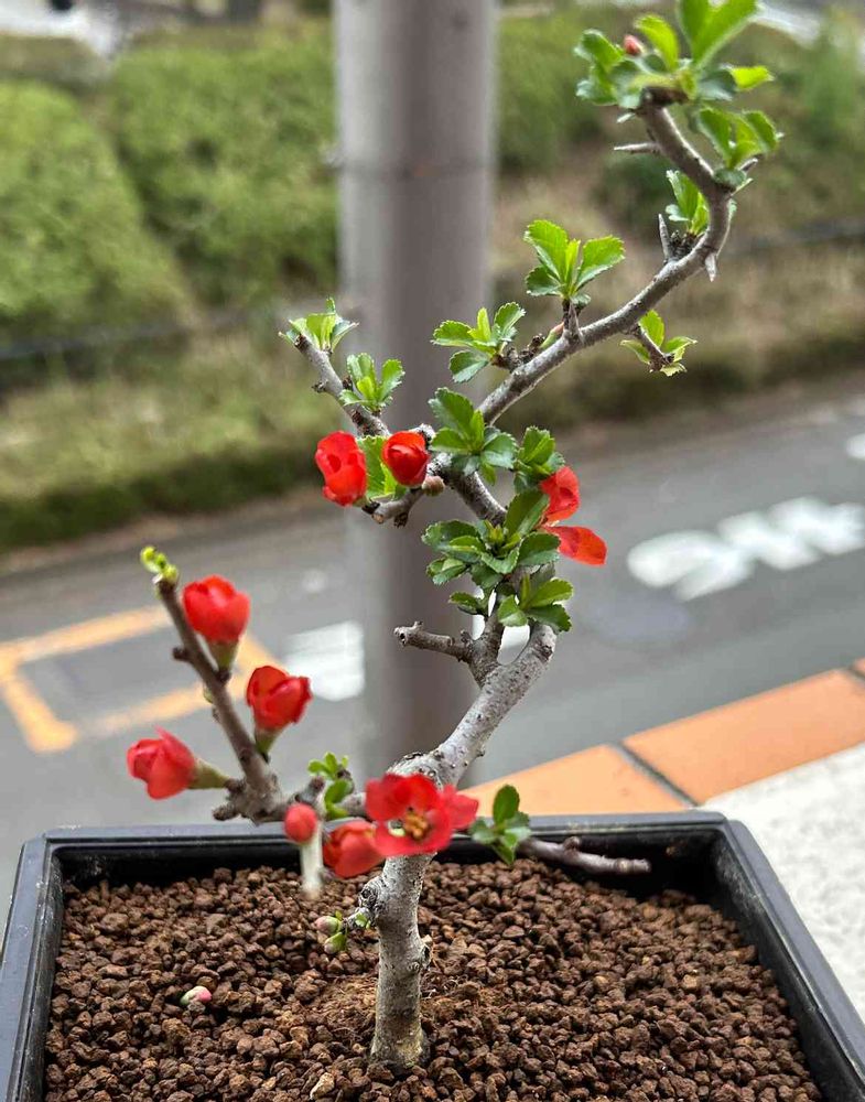 ベランダ,長寿梅(ボケ),赤い花の投稿画像