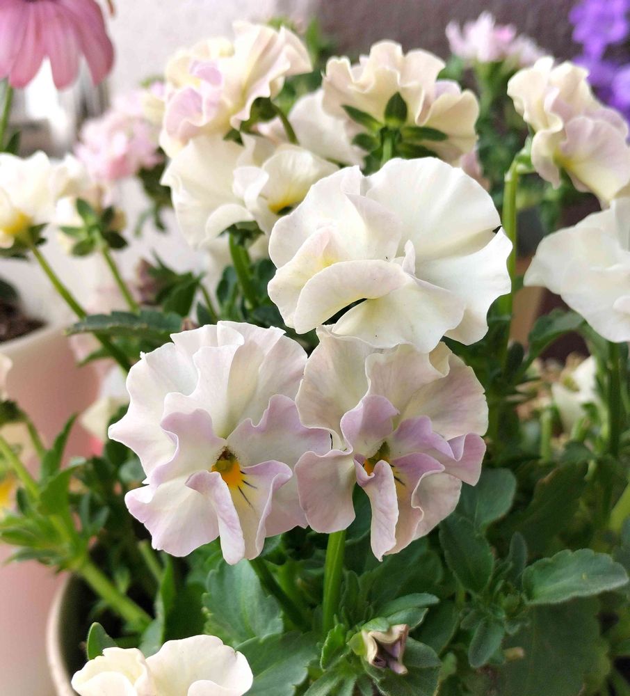 うちのビオラはクリーム色に薄い紫色がグラデーションになったよ👾