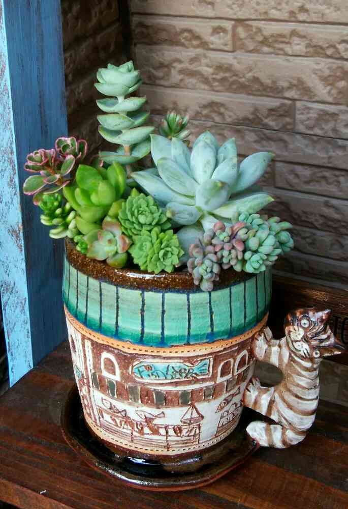 こまものやさんでお迎えした、蓑葉さんの猫ちゃん鉢に寄せ植えしました💕😺💕
