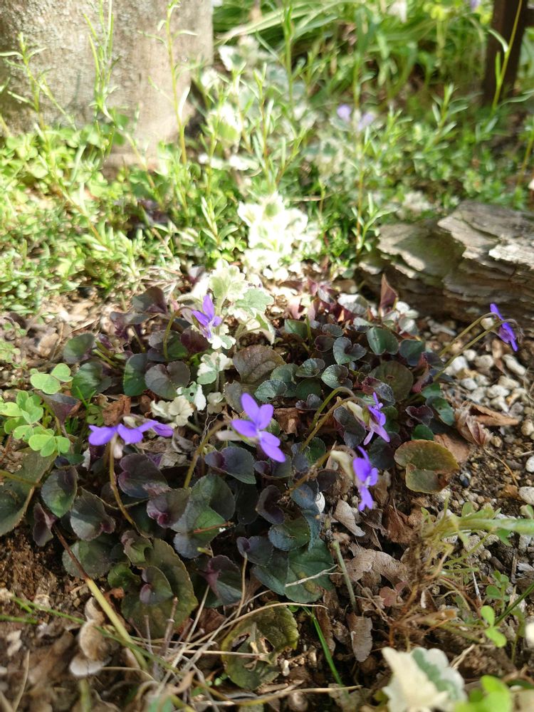 アジュガと宿根のビオラ、いつの間にやら増えてきてます🟣かわいいパープルさん