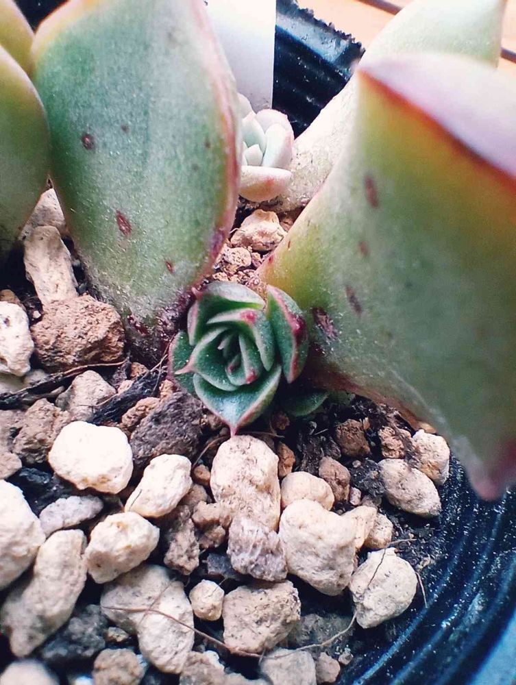 1月31日にも投稿してますが、その後子株ちゃんが出ているのを発見しました!こんなに硬いのに頑張ってくれています(꒦ິ⌓꒦ີ)✨