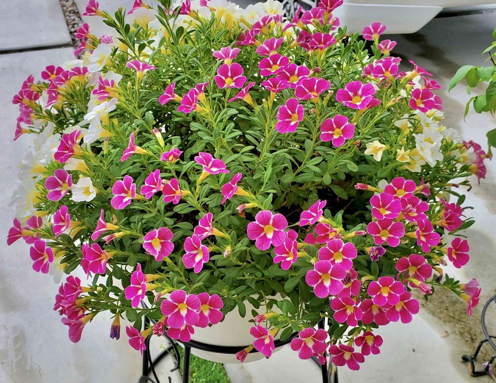 同じ鉢にPWスーパーベル・ブリリアントスターも植えたけど、そちら側は日光が当たりづらいから?まばらに咲いた🌸(2枚目)