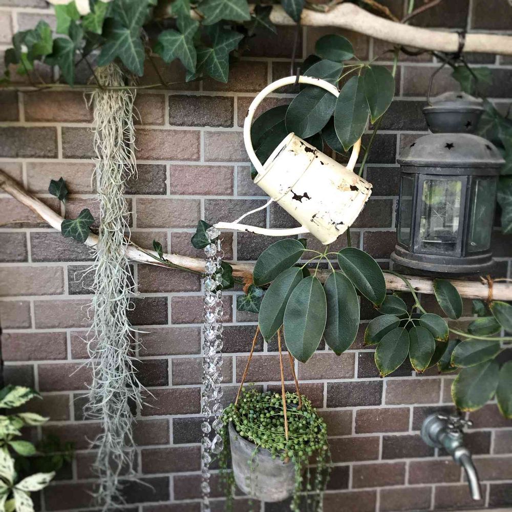 実はPinterest というSNS?で出会った海外の方の元ネタがあるんです。本来は大きなジョーロから何本もビーズチェーンを垂らすアイデアで、とっても素敵なんですよ♡