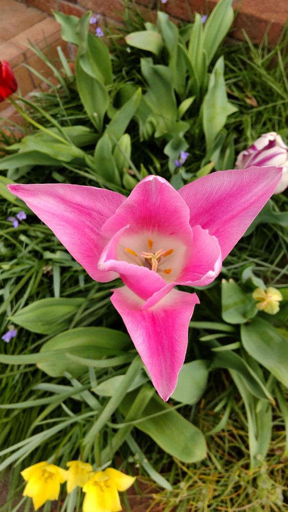 また花びらがちょっと尖った感じの変わったチューリップも咲き始めました。(3枚目と4枚目)