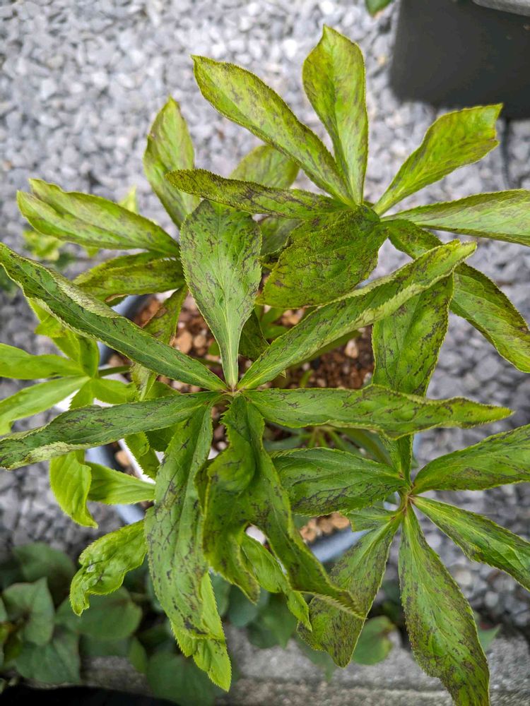 近頃真夏日でクリスマスローズには辛いので半日陰で風通し良いところで養生して下さいー