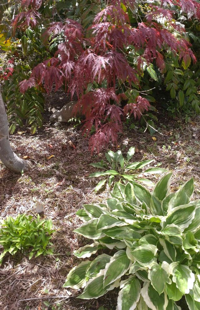 こちらでは ギボウシさんが竹の子みたいに ツンツンと可愛いい新芽🌱は 3月初旬なので 一月半くらい違いますね…😎
