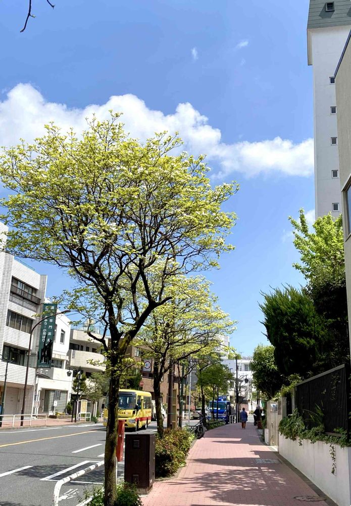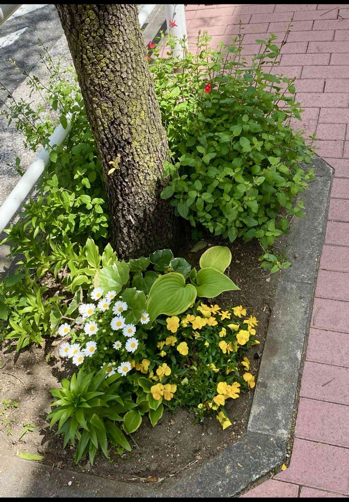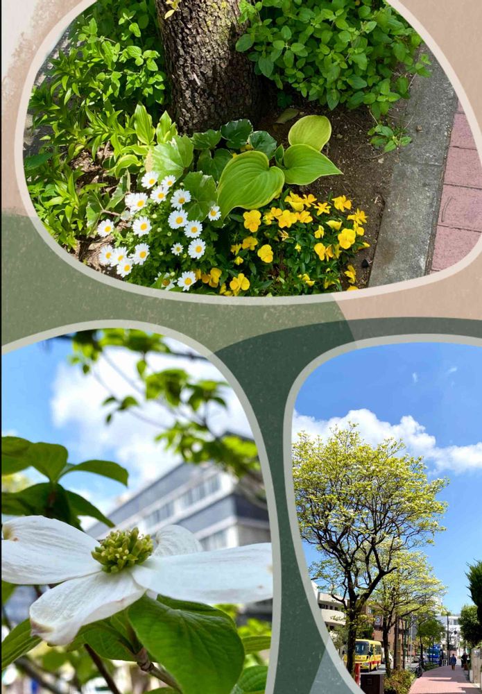 月一で通院している通り道🛣️ジャーマン通りのハナミズキと沿道のお花たちです💛🤍💜🌿
