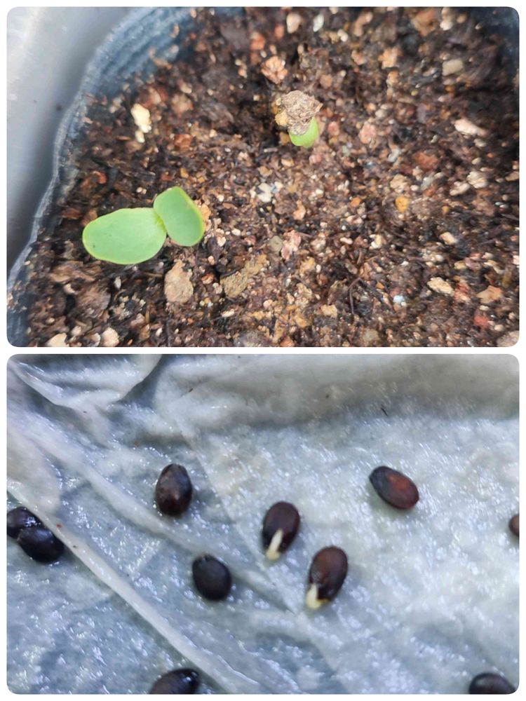 中々発芽しないので、湿らせたキッチンペーパーで発根したのが下の写真です。