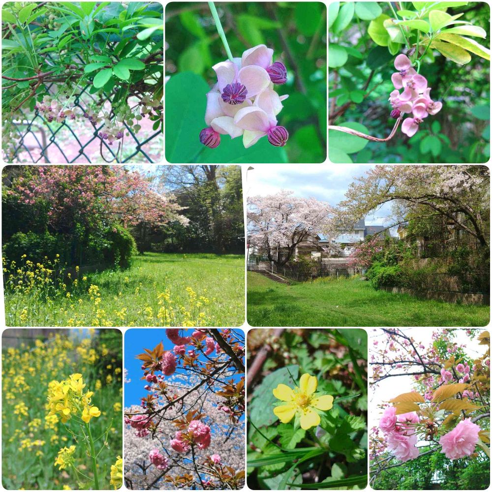 あちこちに群生して八重桜の木に絡んで広がっていたり、フェンスに見事に絡んで増殖してた。
