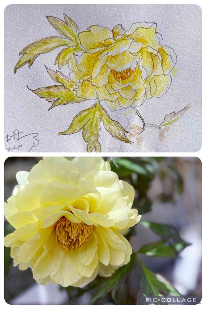レモンイエローの牡丹が、今年もお隣で咲きました✨