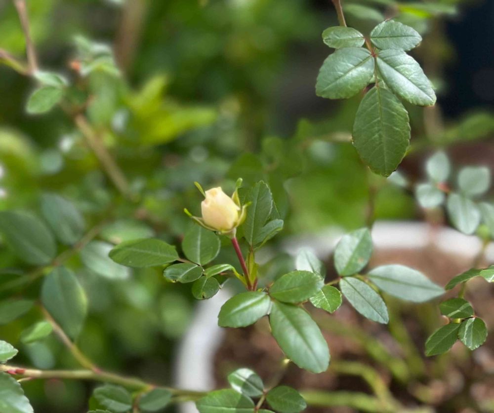 どうなるかと心配でしたが、咲いてくれています🌹まだ若い感じのする枝葉です🌿