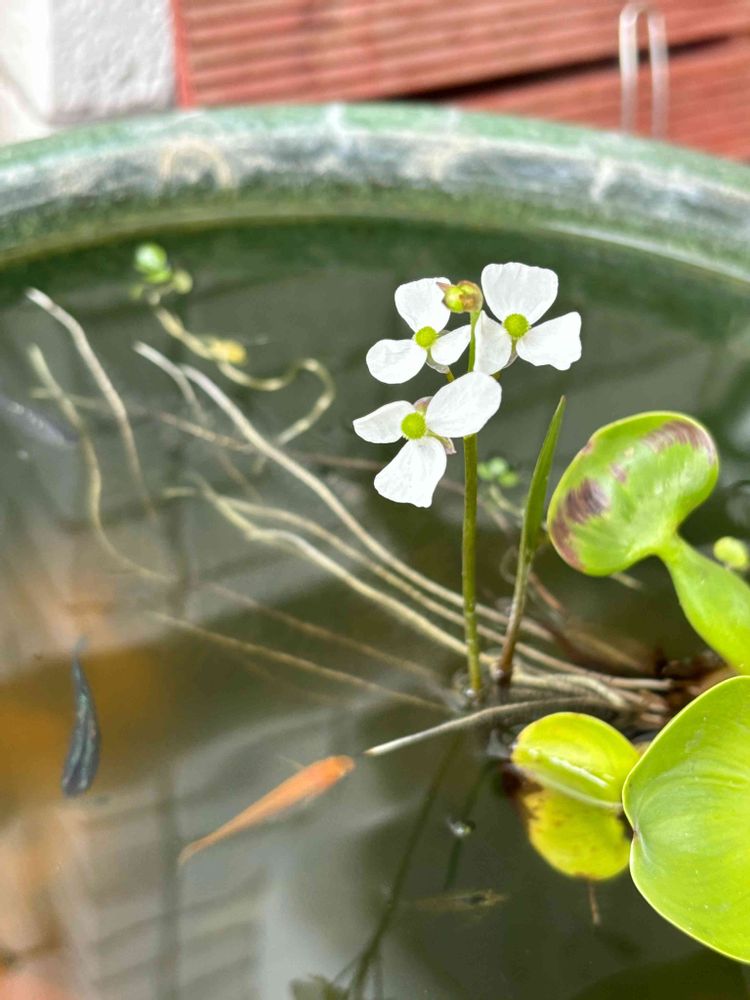 水草開花。メダカちゃんたちも元気に泳いでたくさん卵産んでます。