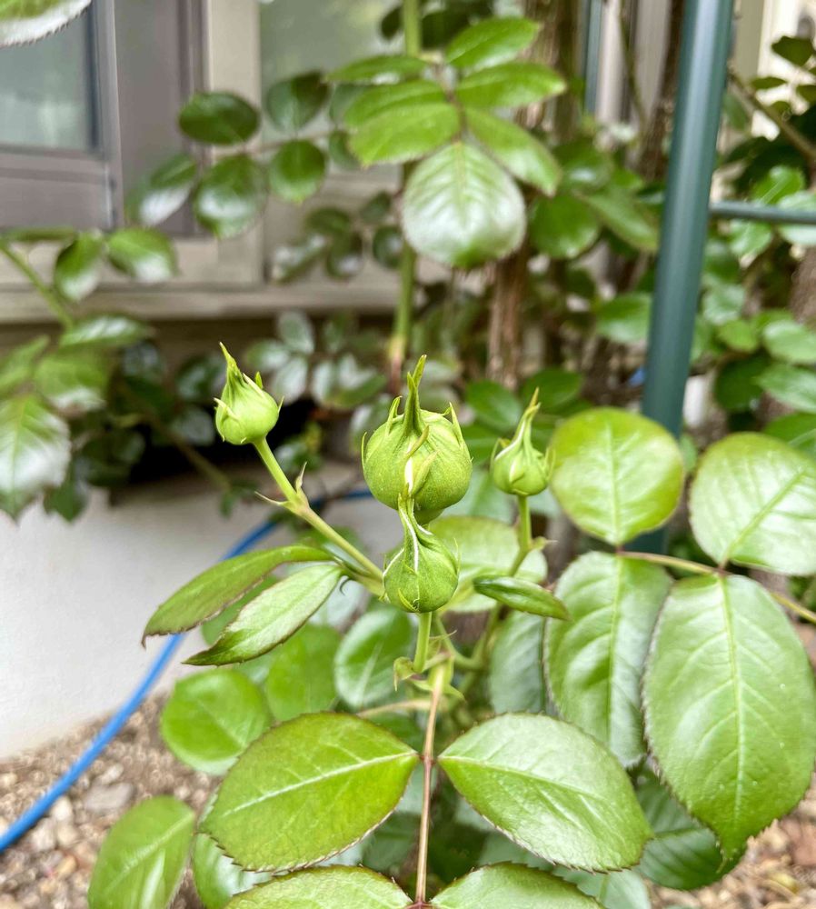クレマチス開いて来て嬉しい。今年は2輪かな、ツルがやっと伸びて来たので大事にしたい。バコパさんもりもり、バラの蕾もたくさん膨らんできた。