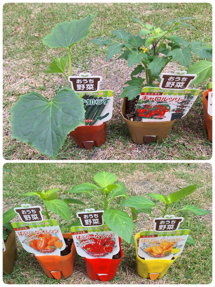 サカタのタネさんの「おうち野菜」のモニターキャンペーンに当選し、①の野菜苗5株が送られてきました🎵🙌