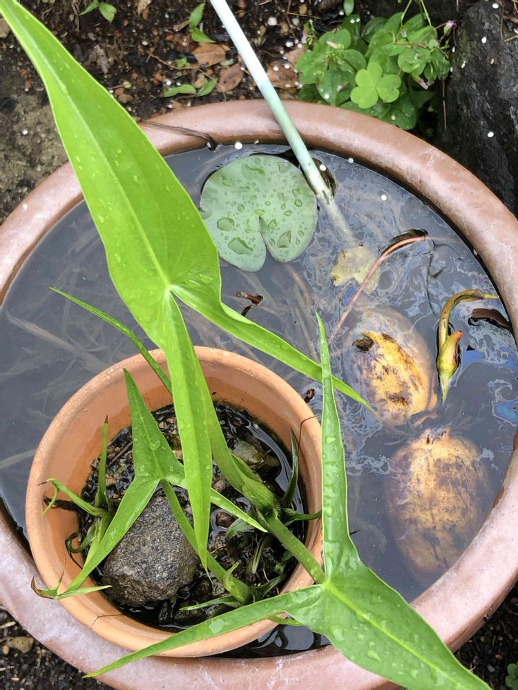 そうなら、睡蓮鉢に入れて見よう!と遊んで見た。