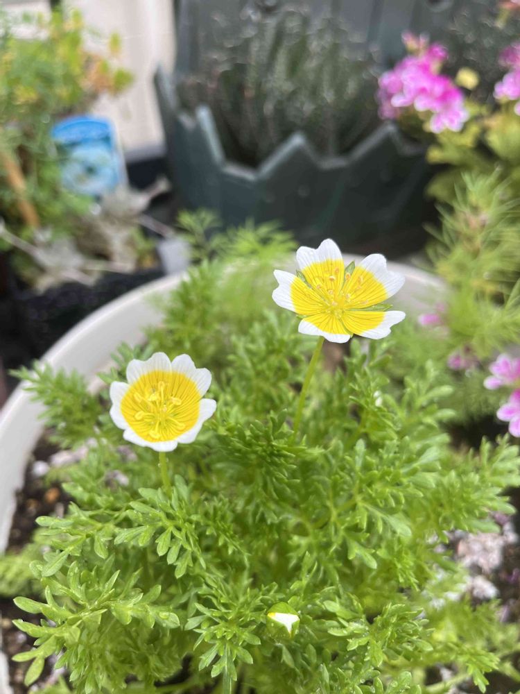 ①リムナンテスが今朝咲いてました🌼🤍🌼🤍