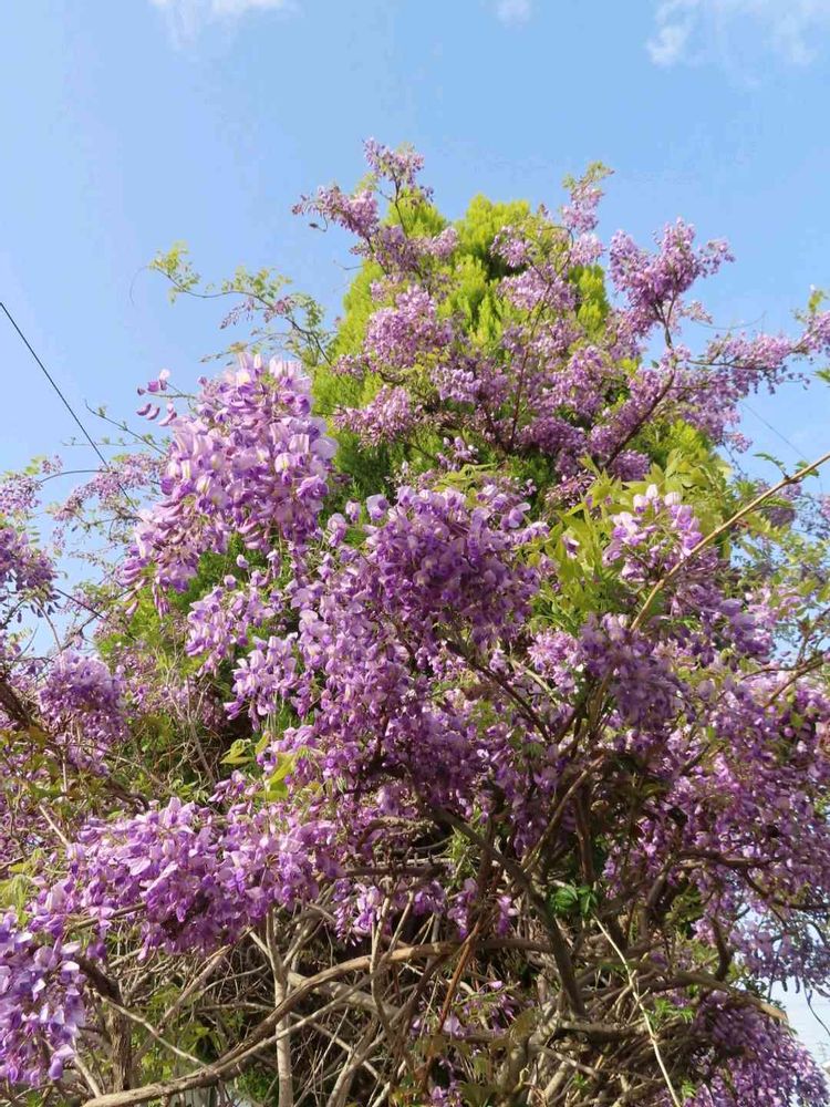 一人住まいだったご老人が施設に入られたみたいで、去年から空き家になってますが、住人が居なくても立派な藤は見事に咲き誇っています😟💜