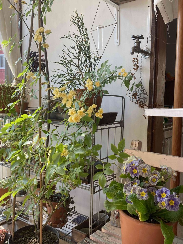 リビング・ダイニング,黄モッコウバラ,プリムラ スフィンクスの投稿画像