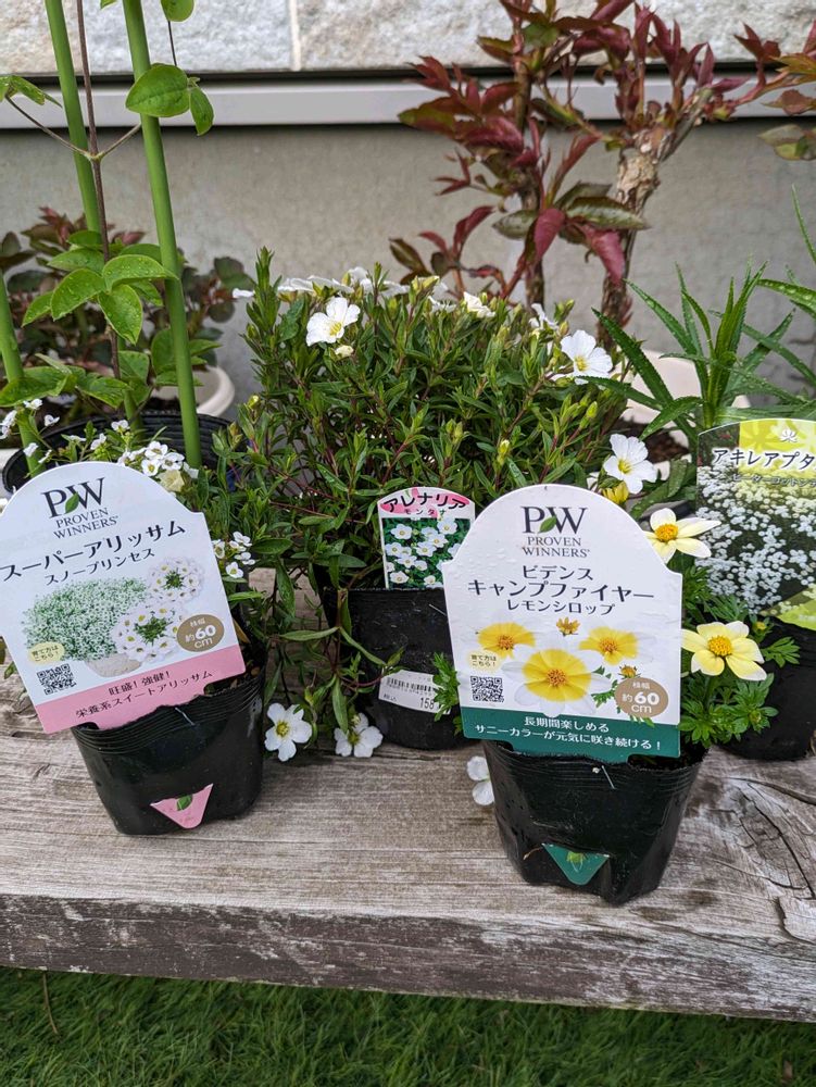 そのあとはお決まりの白い花系、スーパーアリッサム、アレナリア、アキレア。娘の好みの黄色い花。