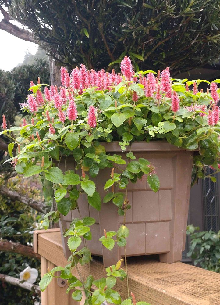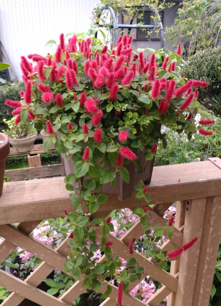 だいぶお花が揃ってきました!剪定忘れたとこの2箇所が垂れ下がってきたので、ウッドデッキに今乗せて📸パチリです!