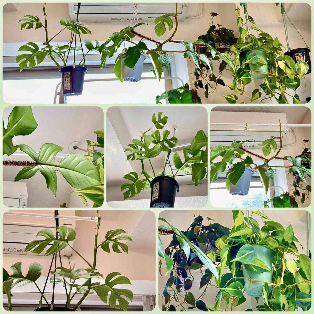 ハンギングチームは2枚目の写真のお迎えした時と比べて半年間でだいぶ成長しました😊ホスクリーン物干しに吊るしてるので、軽量化ベラボンに植え替えようと思ってます😊