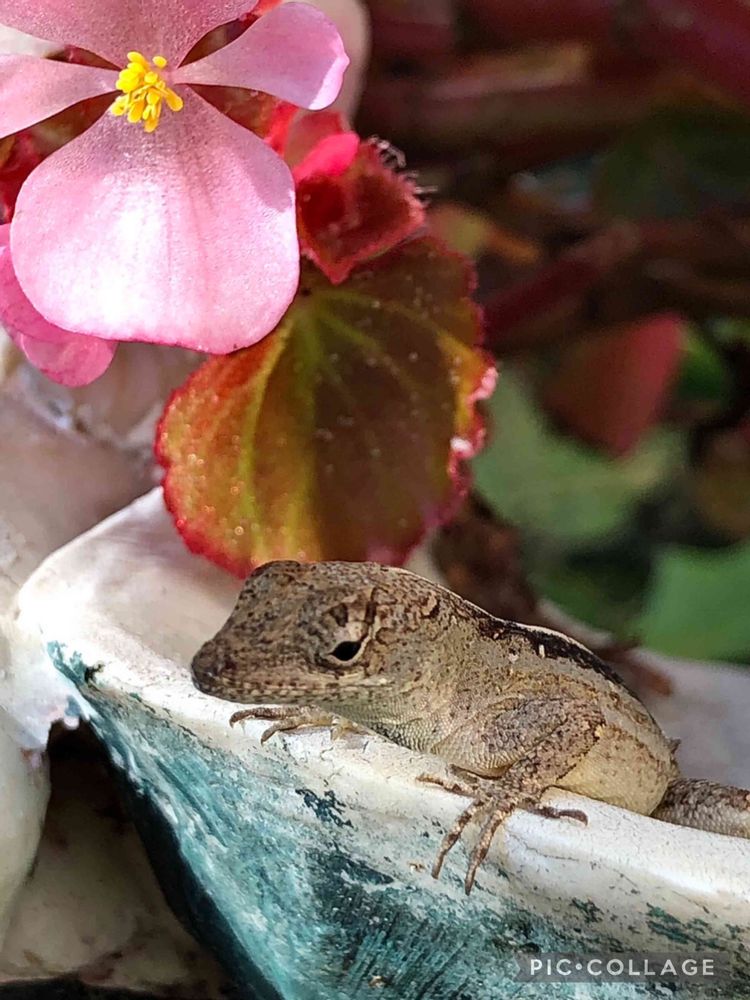 ピンクのシャリンバイに負けないくらい可愛らしいトカゲさんね🦎
