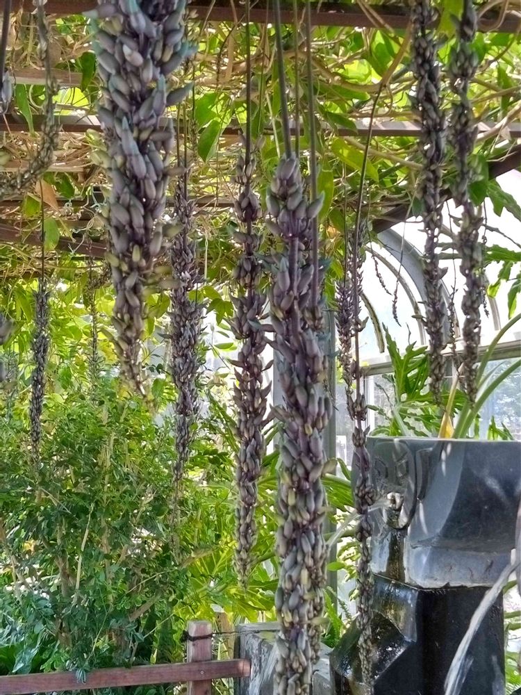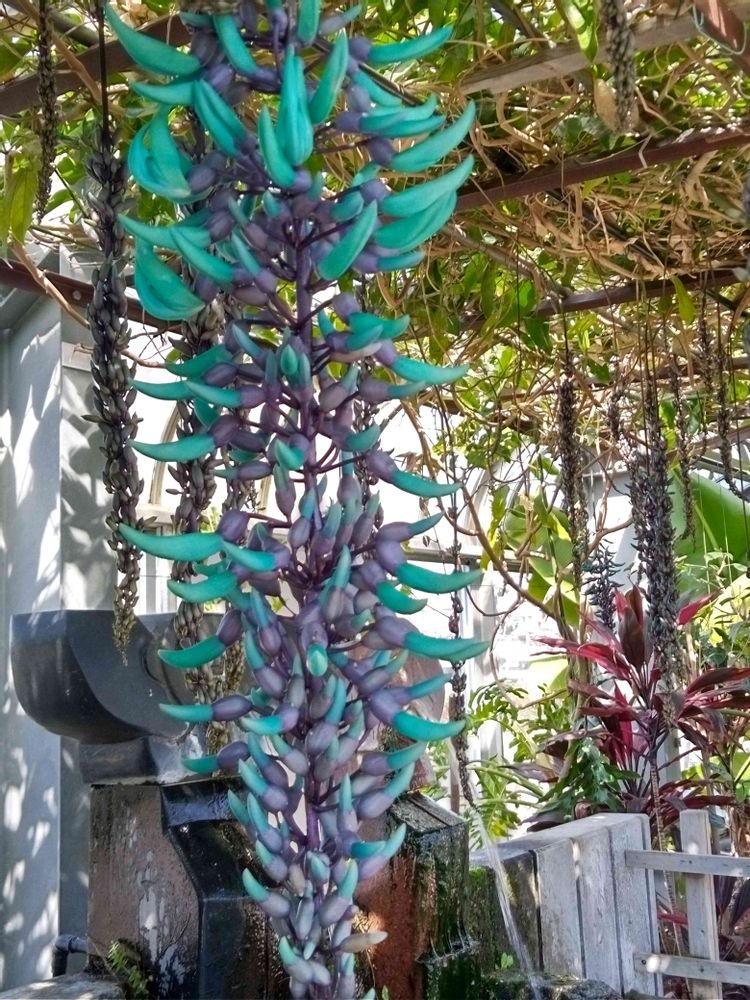 ① たくさんのヒスイカズラの花房、すばらしいね。