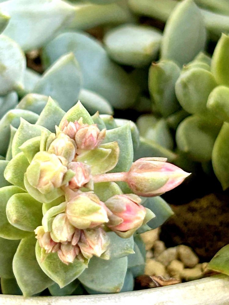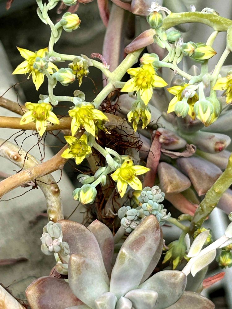 多肉ちゃんも放ったらかしで、どれもクネクネで手がつけられないのですが、花が咲いてくれます🤗