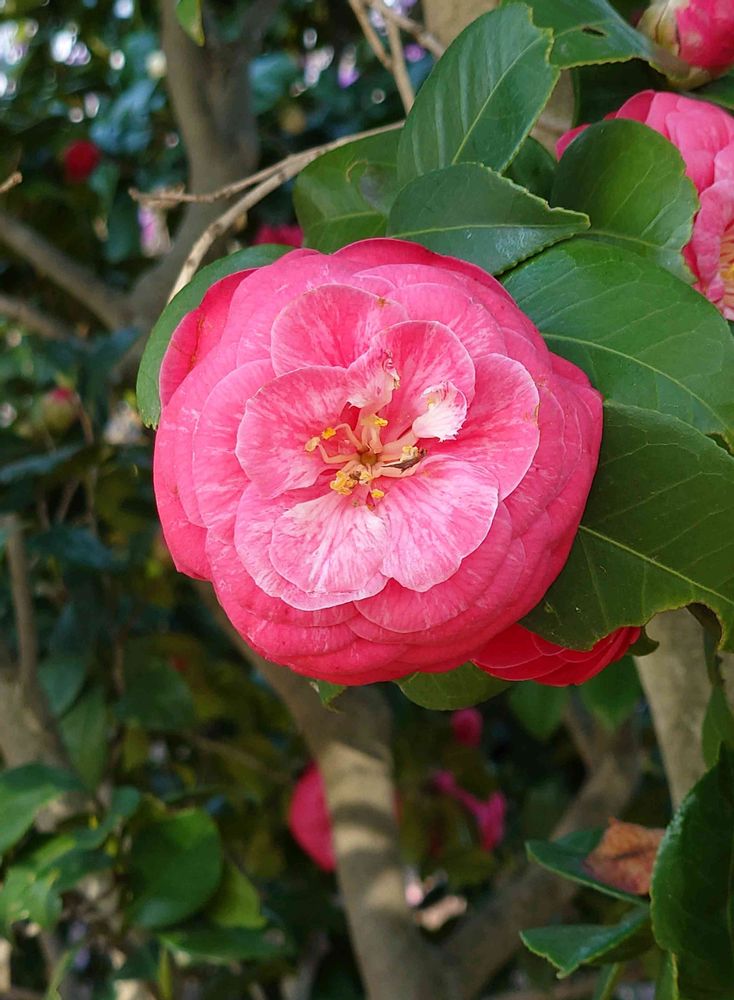このモコッとしたツバキ、かわいいですね❣️ 先週撮りました📸(農業試験場内にて)