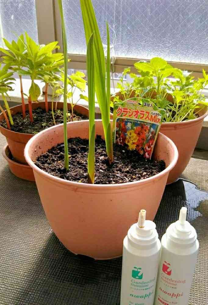 グラジオラス、ホウセンカ、ミズナ、オクラたち
