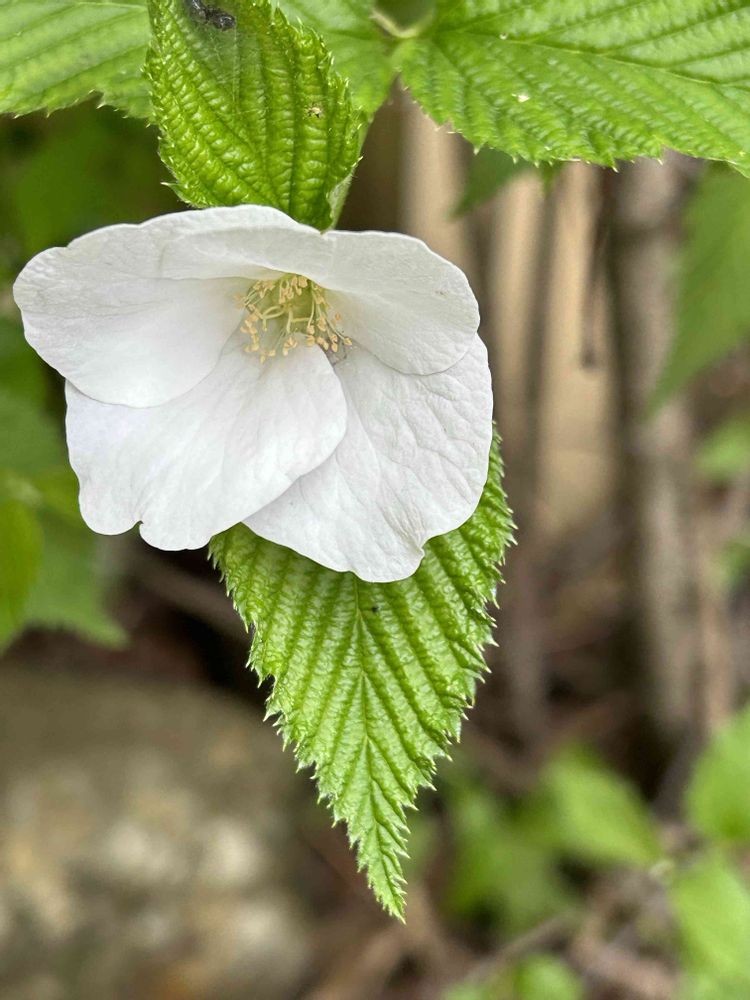 の植え込みに、ひっそりと咲いていた白山吹💚清楚💚