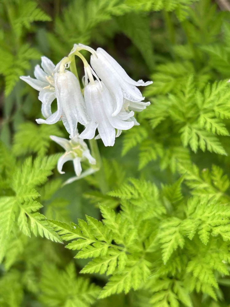 2️⃣ は、峠の草むらにポツンと白い花💙こんな所に👀イングリッシュブルーベル?珍しい白バナ🌿