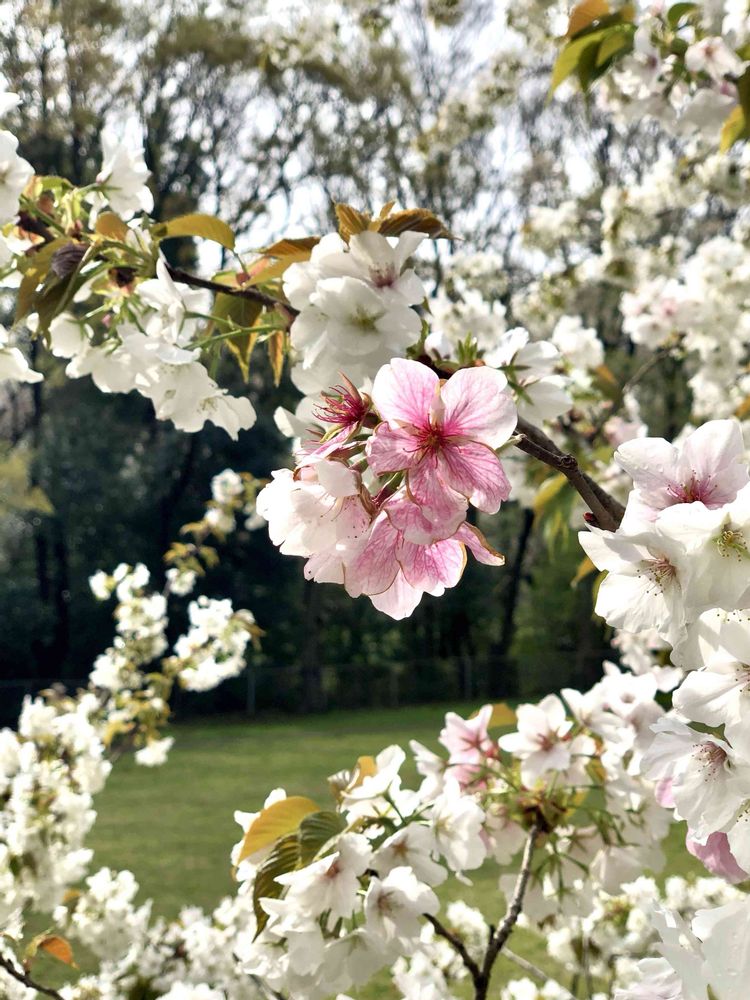 この桜は 名前がついていなかったので誰だかわからないのですが、お花と同時に葉っぱも出ていて、それはそれでお似合いでした🌸🌿 過去のお写真ですが、期間限定のお花なのでupしたくて😆