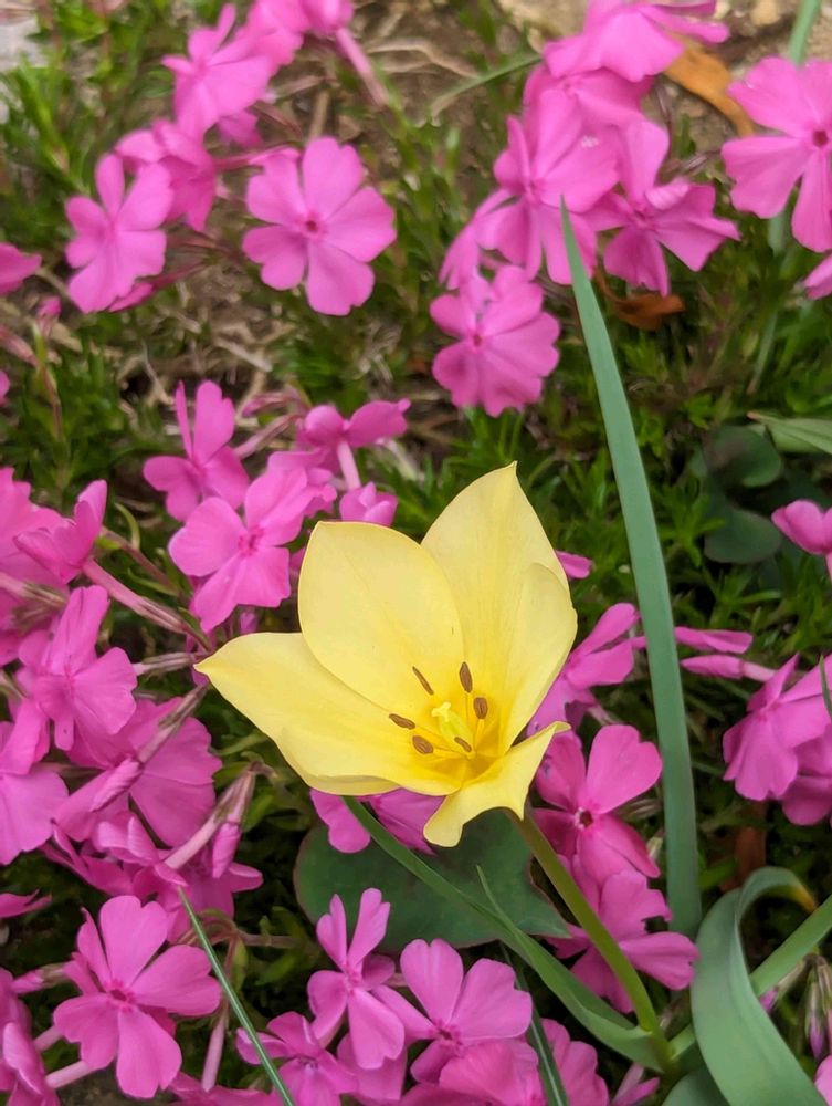 小さな庭,シバザクラ,原種系ミニチューリップの投稿画像