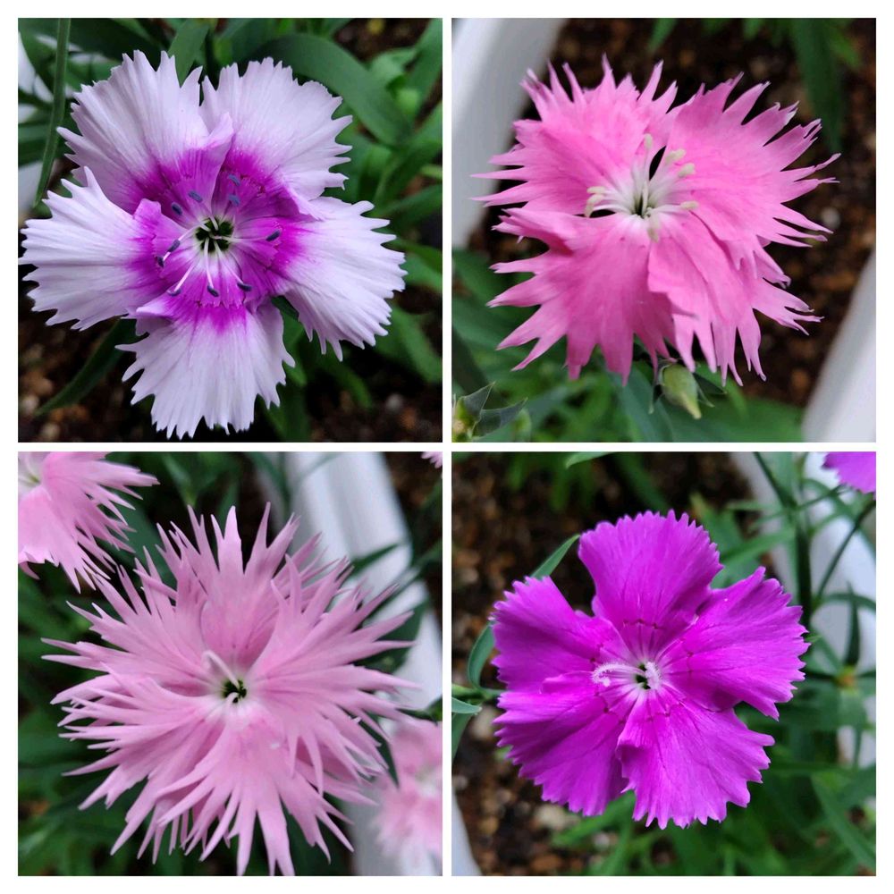 ナデシコ色々、咲いたのでまとめてみました。ピンク、ムラサキ、ギザギザ、可愛い🩷